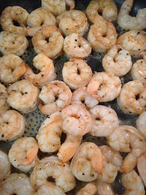2. Heat a large pan over medium-high heat and add olive oil to the pan. Add shrimp and let cook for 2 minutes.